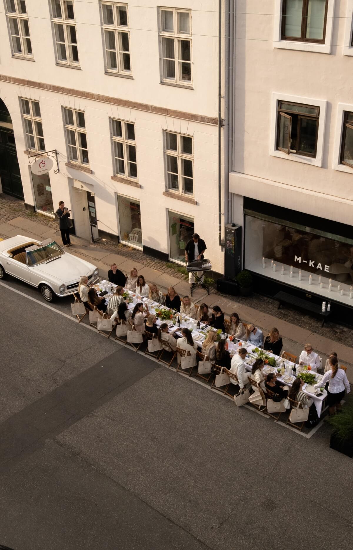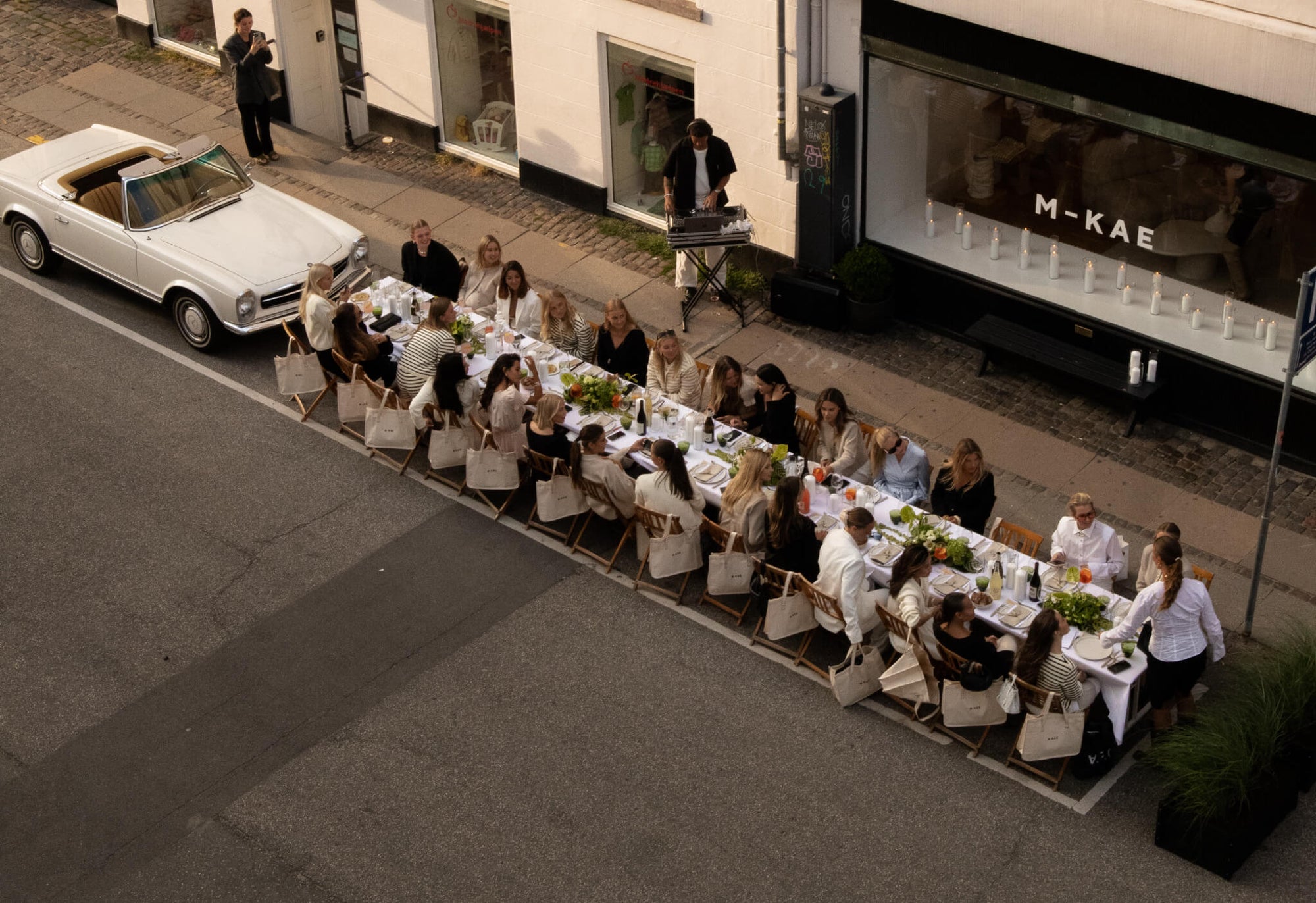 En perfekt varm og solrig aften med en skandinavisk middag lavet af Veatery under åben himmel med udsigt over Kongens Have. Gæsterne nød customized M-KAE drinks, skøn musik og bar deres yndlings M-KAE outfit.